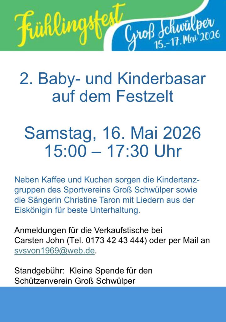 Vom 15.05.2026 bis zum 17.05.2026 findet unser diesjähriges Frühlingsfest statt.